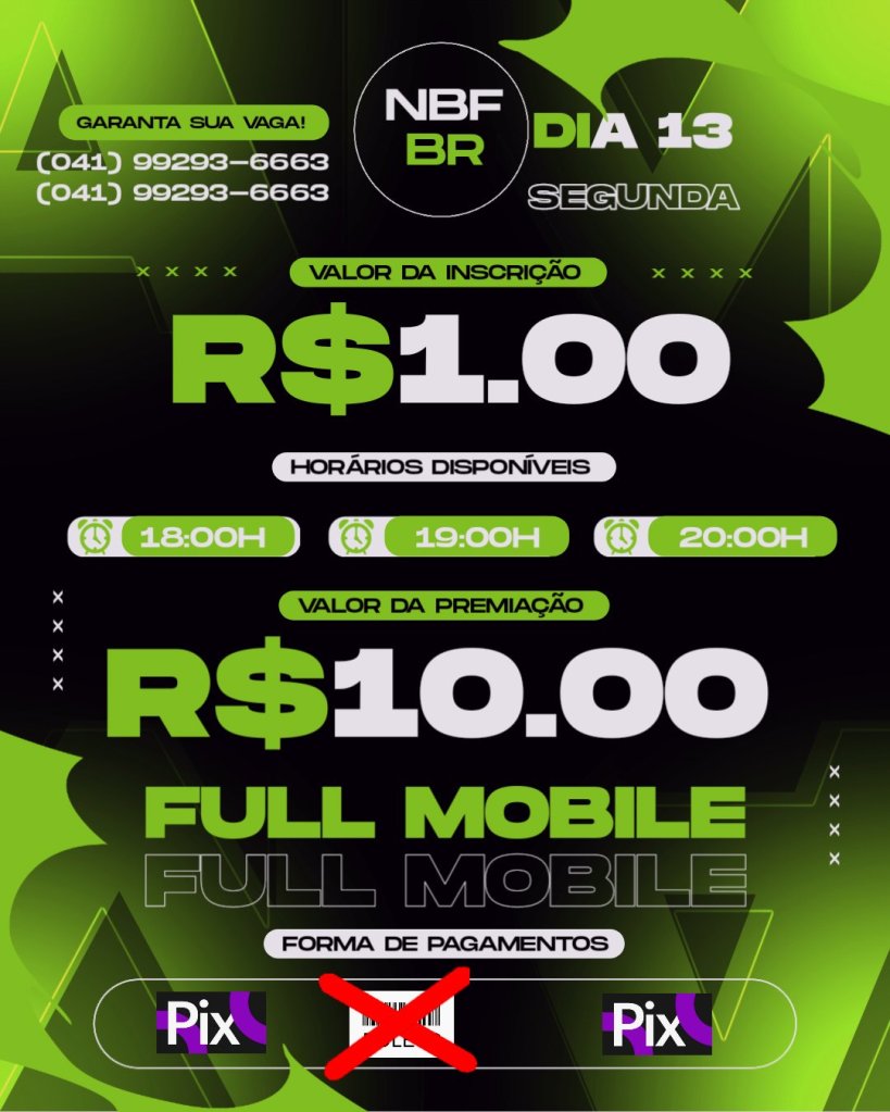 Esse é um campeonato de free Fire solo a entrada está apenas custando r$ 1 a premiação para o jogador que ganhar em primeiro lugar vai ser de 10 Reais